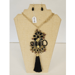 Black tasseled necklace with earrings